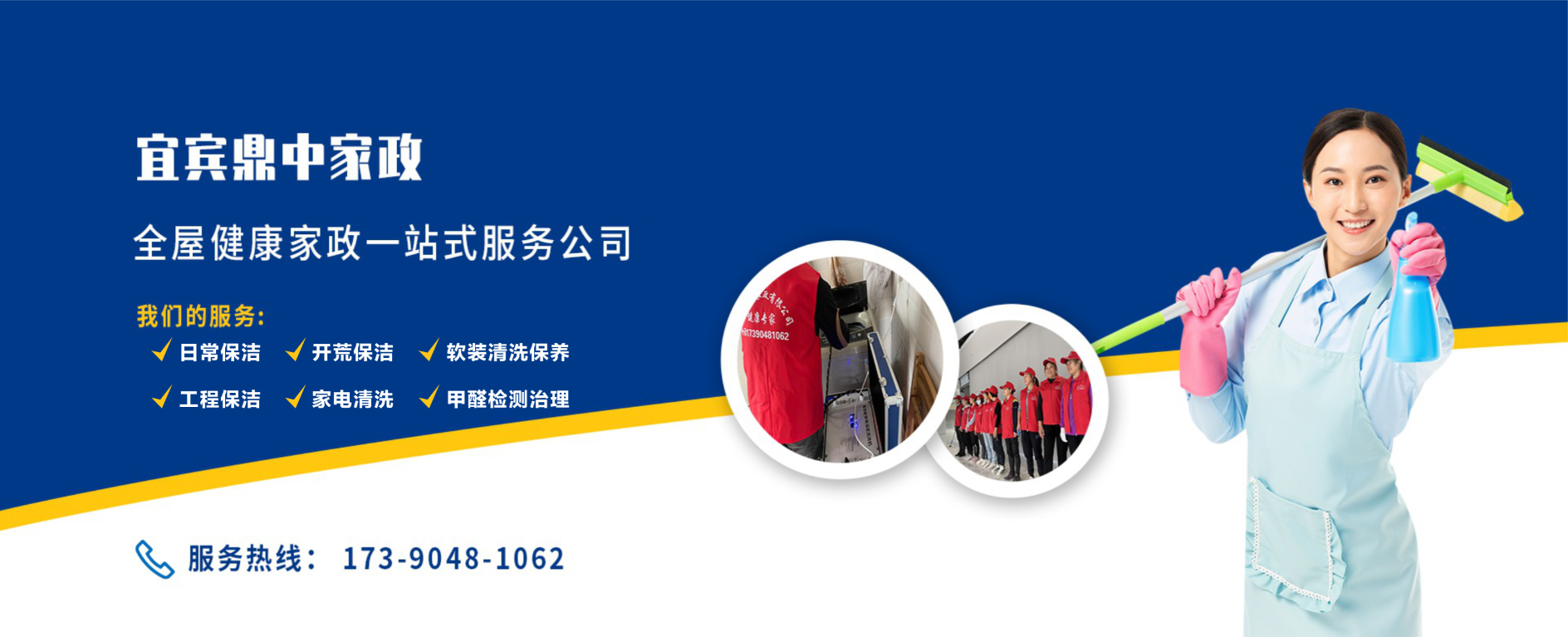 宜賓鼎中家政有限公司,是一家提供家庭健康一站式服務的新型家政公司,本公司提供,日常保潔,開荒保潔,甲醛檢測和治理,家電清洗,軟裝清洗,拋光打蠟,各種養護,工程服務,大型油煙機清洗和中央空調清洗等服務。        我公司起源于2012年,從當時單打獨斗的游擊隊,到現在發展成為一家為家庭提供一站式服務的新型家政公司,有專業的技術工程師和各項服務的專業團隊,服務過無數家庭和事業單位,比如理工大學、宜賓學院開荒保潔,宜賓商業銀行保潔等。        公司擁有完善的管理制度、高素質的管理人員和家政服務人員,有專業的技術和專業的團隊,公司員工都經過嚴格的培訓考核,除了有豐富的專業技能,還具有較強的吃苦耐勞精神和熱情的服務意識,為客戶提供高品質和高標準的服務,讓客戶獲得更******的高端服務體驗。        誠信為本,品質至上,服務于千家萬戶        宜賓鼎中家政有限公司--------竭誠為您服務 聯系人:楊總 電話:17390481062(微信同號) 地址:四川省宜賓市敘州區朱家坡路1號緹香灣
